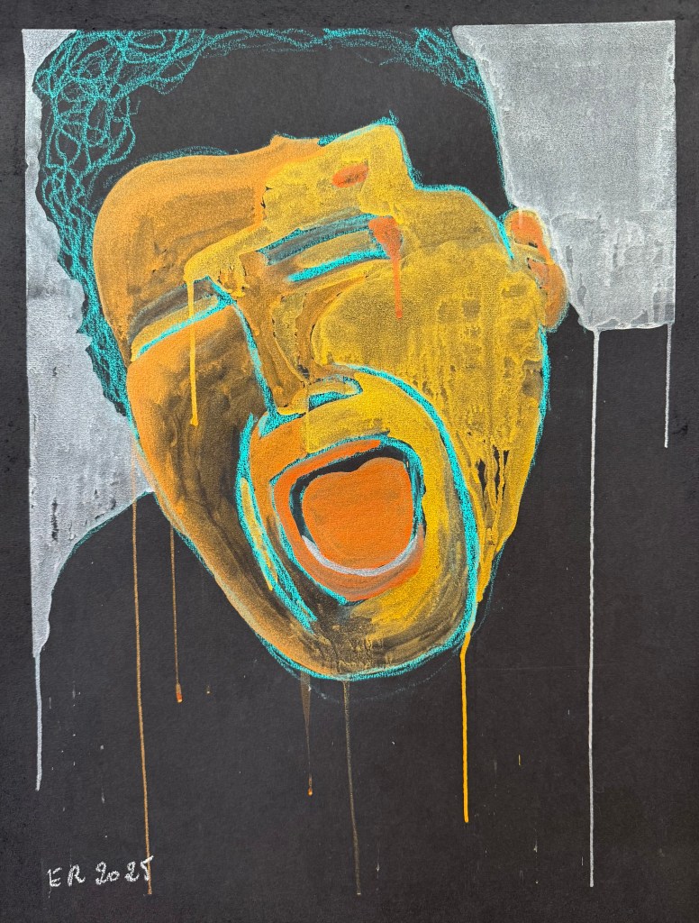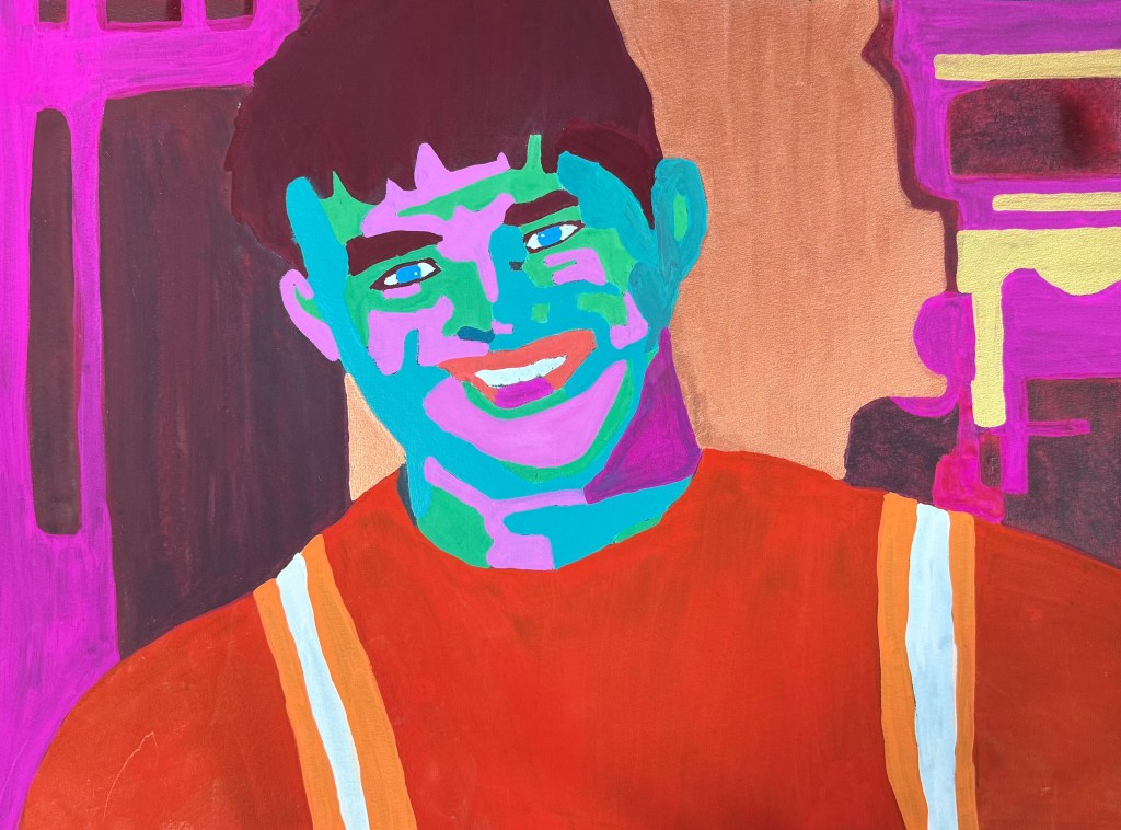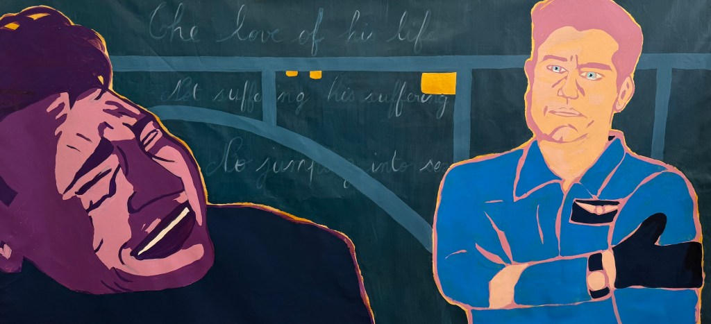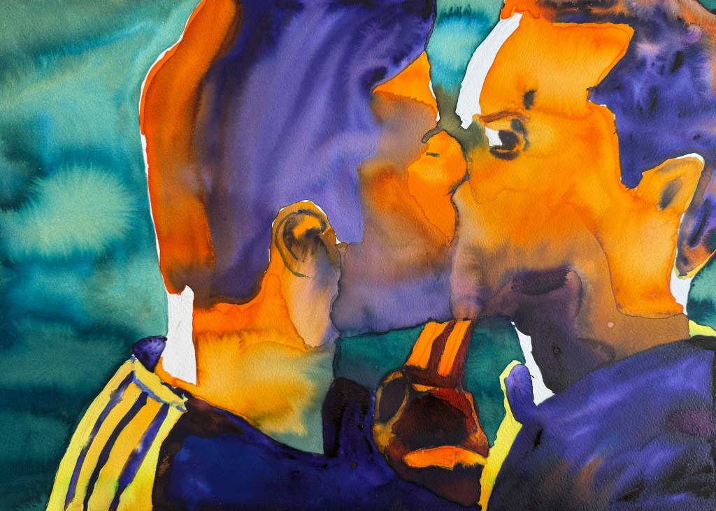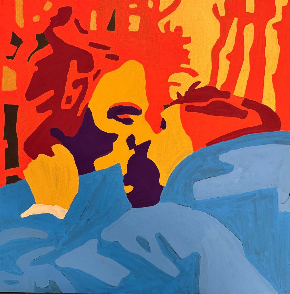 As a lesbian artist, I explore the paradox of gay male visibility—often celebrated, yet fraught with contradiction. My vibrant palette and pop-inspired style invite viewers to question desire, empathy, and the politics of queer representation.