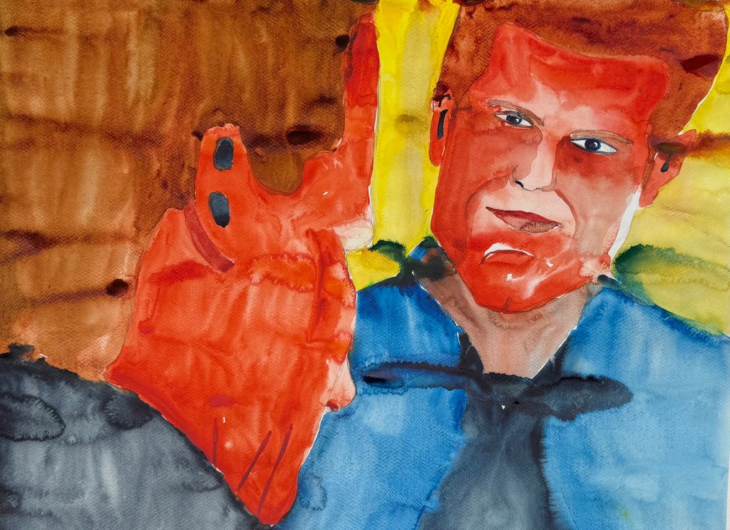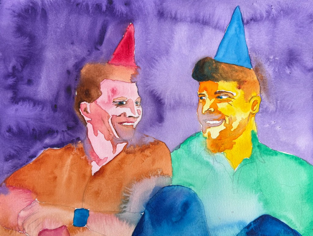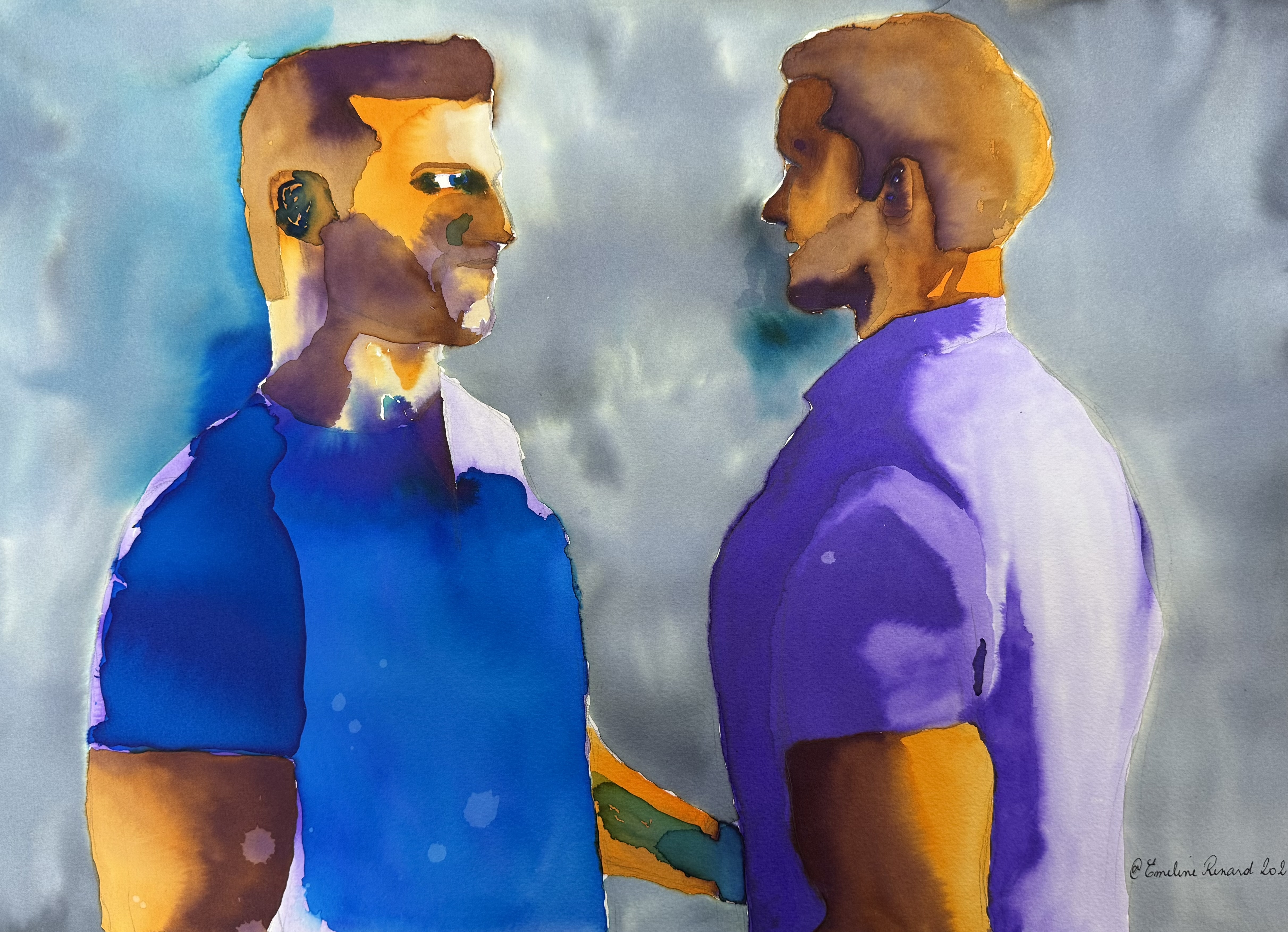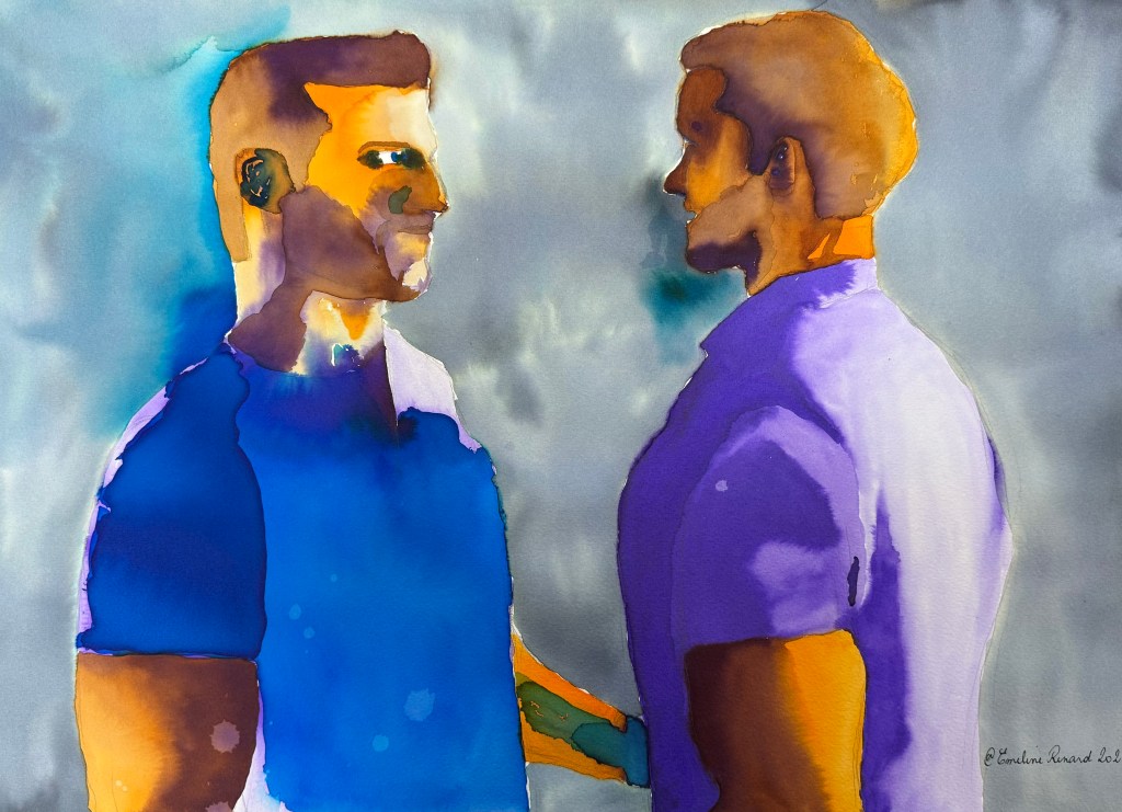 As a lesbian artist, I explore the paradox of gay male visibility—often celebrated, yet fraught with contradiction. My vibrant palette and pop-inspired style invite viewers to question desire, empathy, and the politics of queer representation.