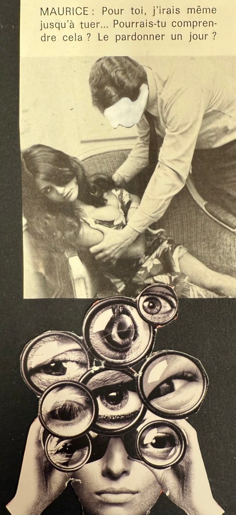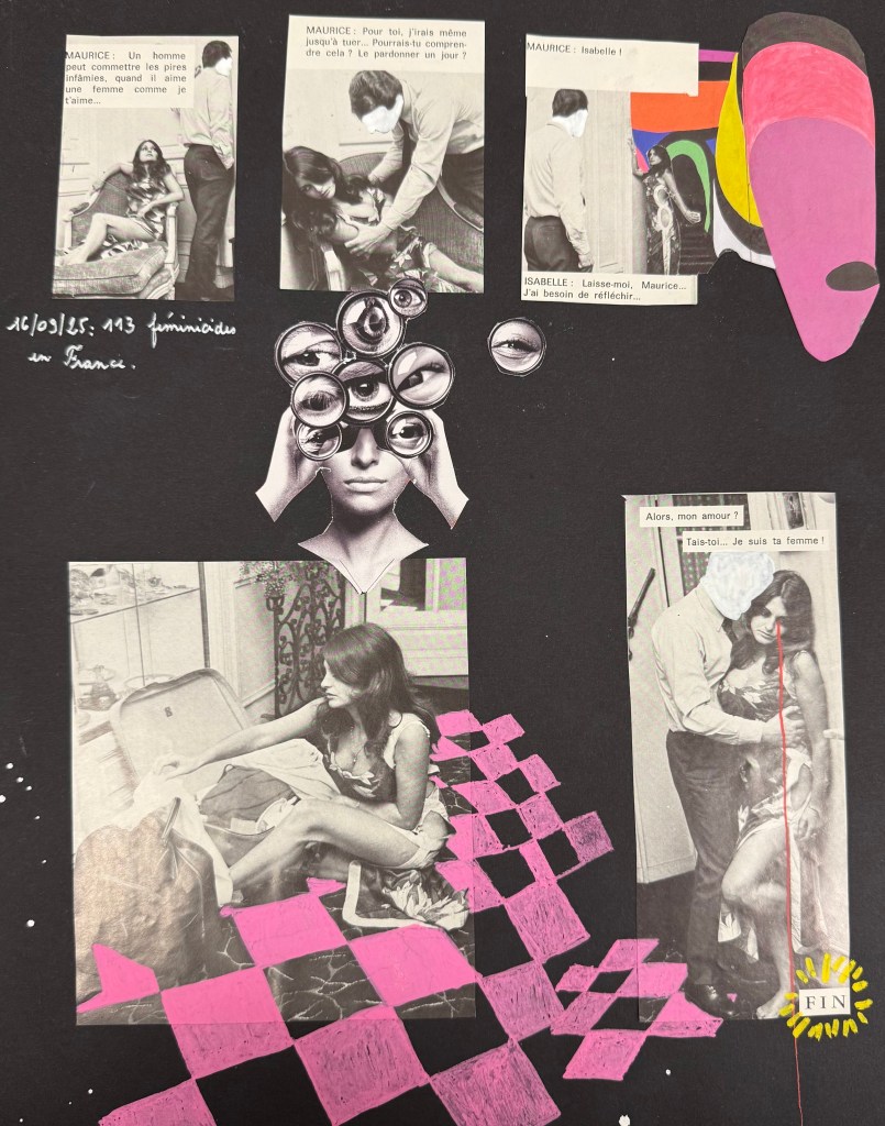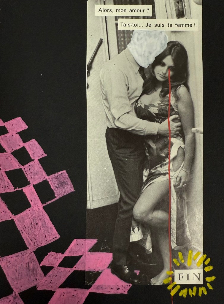 In recent conversations with other artists, I realized that all my collage works, whether directly or indirectly, relate to feminism. Upon reflection, I believe this unconscious approach is far from neutral: the representation of women in the flood of images we receive daily is constructed by privileged white men and is therefore biased. The example of women’s magazines is particularly striking: all women are depicted in the same way, retouched, and absolutely none of them smile. Naturalness is not allowed for women. Without realizing it, and this is even more striking, I am trying to help them rediscover a truly complex and unretouched identity.