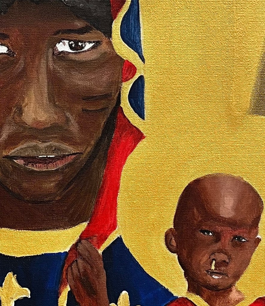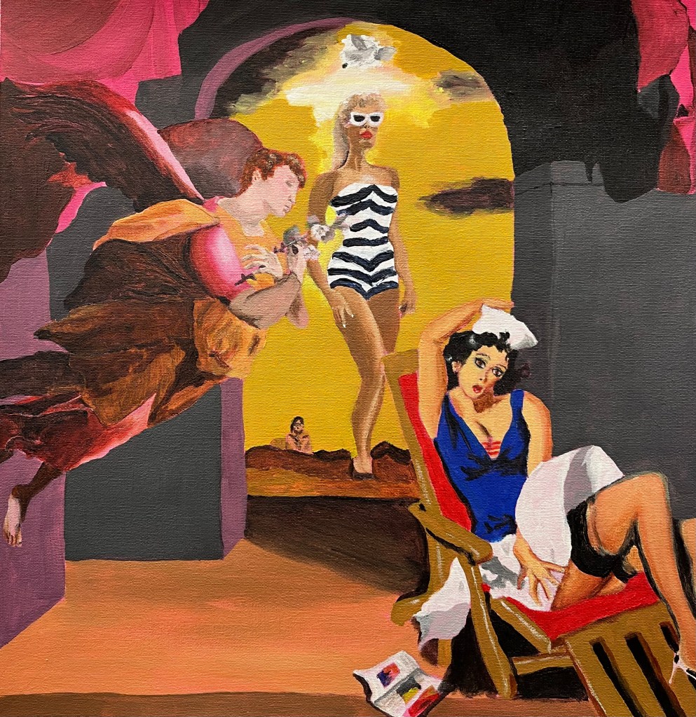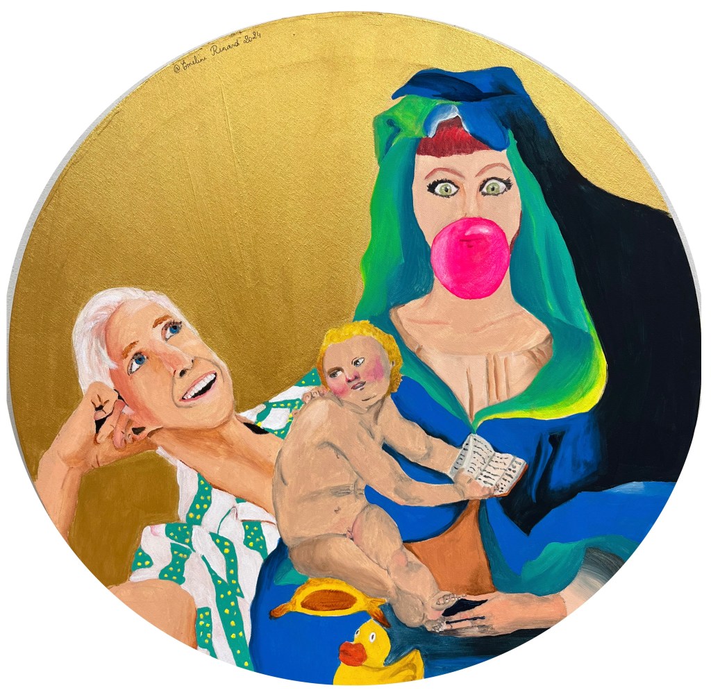 This series reimagines classical religious iconography with feminist irreverence and queer irony. Drawing from Mannerist and Black Madonna traditions, these works fuse sacred motifs with pop culture and subversion.